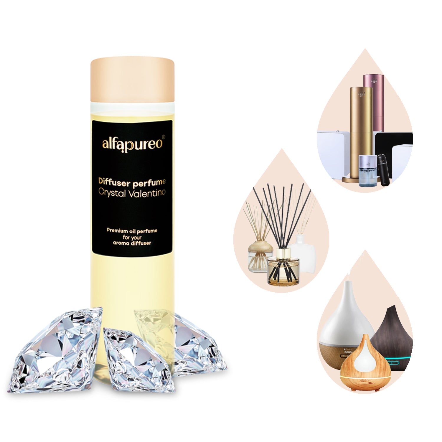 Aromatické oleje AlfaPureo s inovativním složením pro univerzální použití ve všech typech aroma difuzérů - v profesionálních difuzérech AlfaPureo, v běžných ultrazvukových difuzérech i v tyčinkových difuzérech.