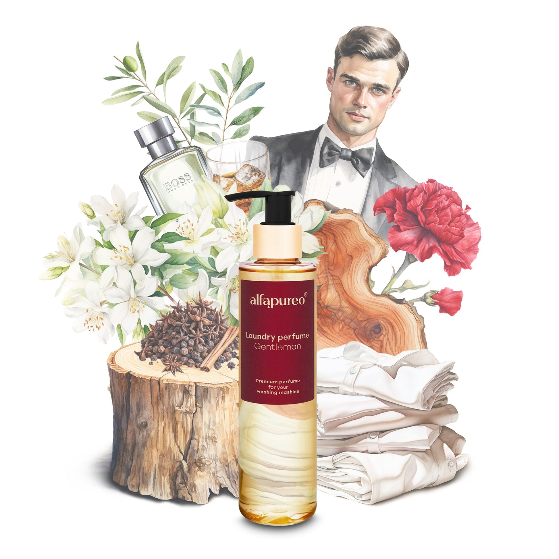 Gentleman - pánský parfém - inspirován nadčasově elegantní vůní značky Hugo Boss, kterou si oblíbily miliony mužů na celém světě. Je svěží, dřevitá a kořeněná. Vrchol vůně tvoří esence švestky, jablka a bergamotu, v srdci vůně ucítíte hřejivý hřebíček, skořici a karafiát a silný základ z olivovníku, vanilky a vetiveru přetrvává na prádle celé týdny.