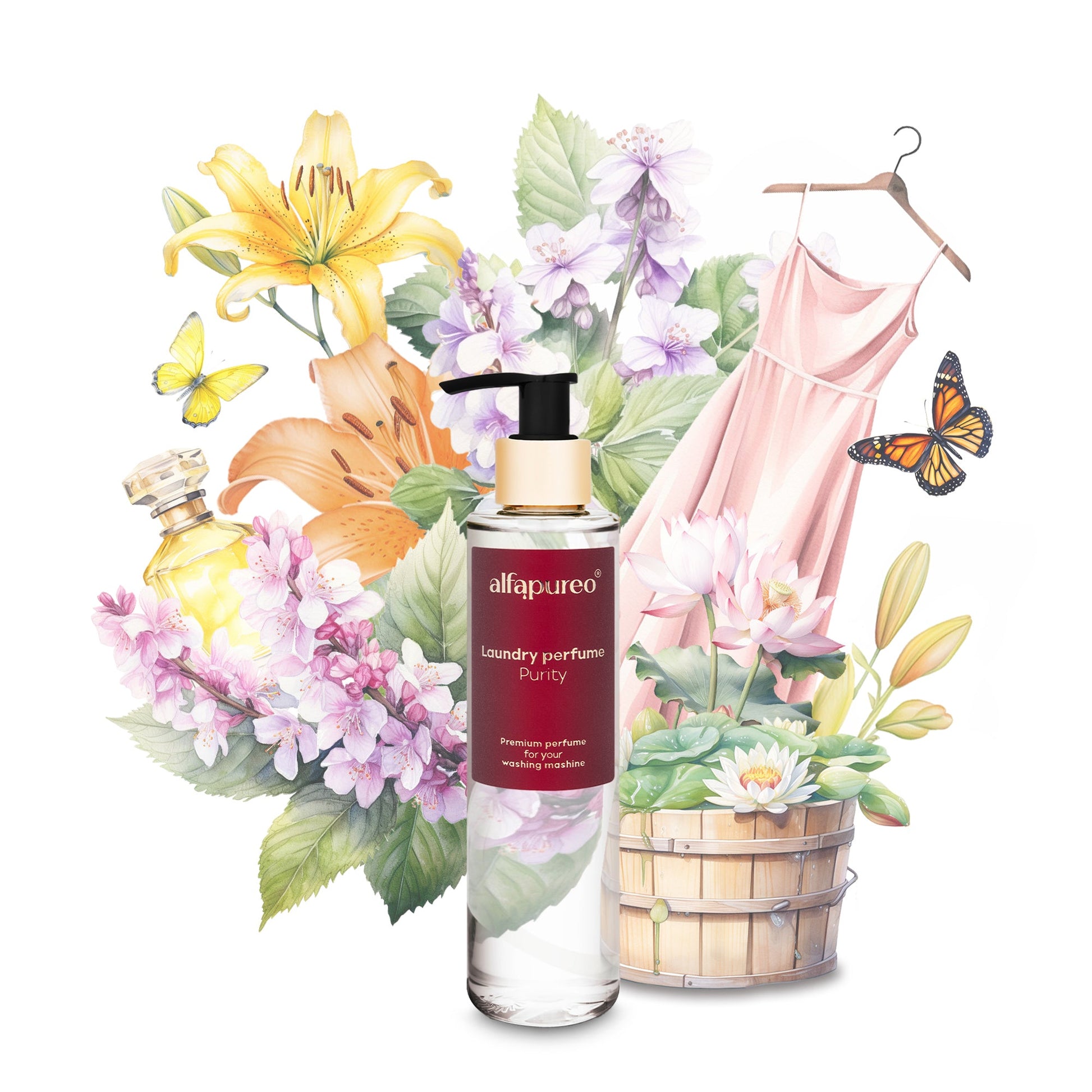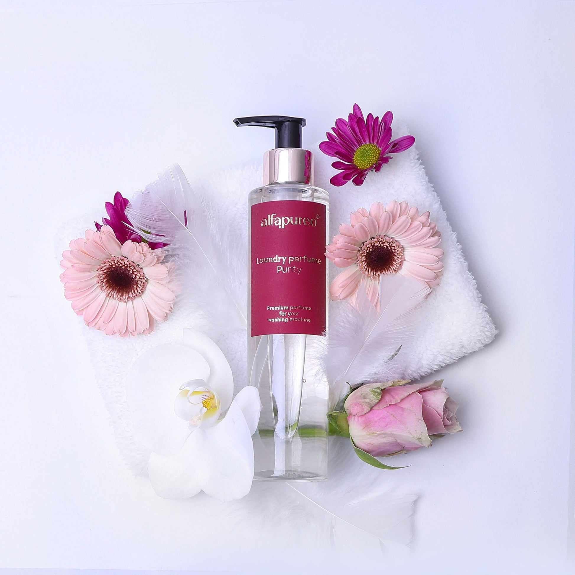 Přidejte svému prádlu nádech luxusu s našimi 100% koncentrovanými parfémy na praní AlfaPureo. Všechny vůně jsou inspirovány světoznámými parfémy a jsou vyrobeny z "jemných vonných látek", vonných kompozic, které se používají při výrobě tělových parfémů. Proto jsou šetrné k pokožce a jejich vůně se aktivuje až při nošení spodního prádla.