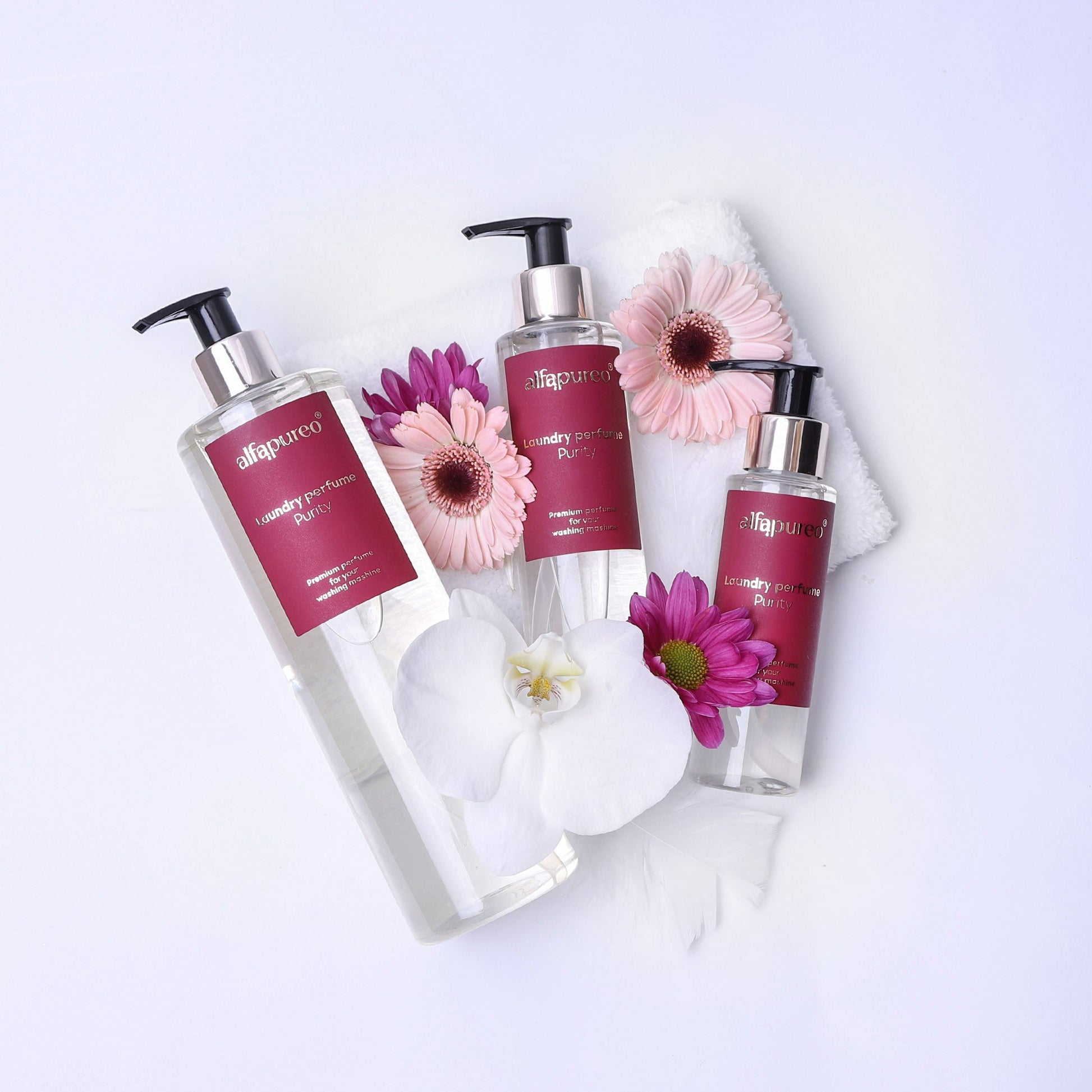 Speciální vlastností parfémů na praní AlfaPureo je, že jsou vhodné pro všechny typy tkanin. Dokonce i pro tkaniny z mikrovlákna a funkční oblečení, protože neobsahují žádné kondicionéry. Lze je proto používat v sušičce, aniž by došlo k ucpání filtrů a nepoužitelnosti sušičky.